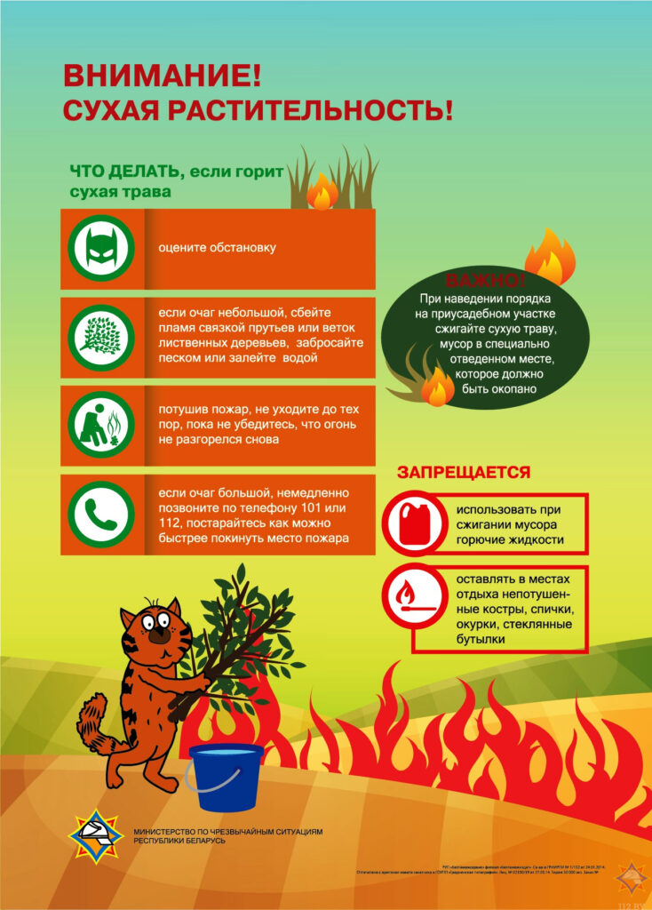 Стоит отметить, что в Беларуси в соответствии со статьей 16.41 за разведение костров в запрещенных местах предусмотрено наложение штрафа до 12 базовых величин. Согласно статье 16.40 Кодекса об административных правонарушениях за незаконное выжигание сухой растительности, трав на корню, а также стерни и пожнивных остатков на полях либо непринятие мер по ликвидации палов виновные лица привлекаются к административной ответственности в виде штрафа в размере от 10 до 30 базовых величин. В случае причинения ущерба в особо крупном размере наступает уголовная ответственность. Кроме того, статьей 46 Закона Республики Беларусь «О пожарной безопасности» предусмотрено, что лица, нарушающие или не выполняющие требования законодательства о пожарной безопасности и международных актов, требования, предписания, вынесенные органами государственного пожарного надзора, лица, виновные в возникновении пожаров, несут дисциплинарную, материальную, административную и уголовную ответственность в соответствии с законодательством.